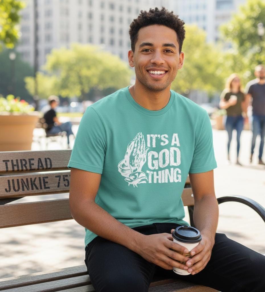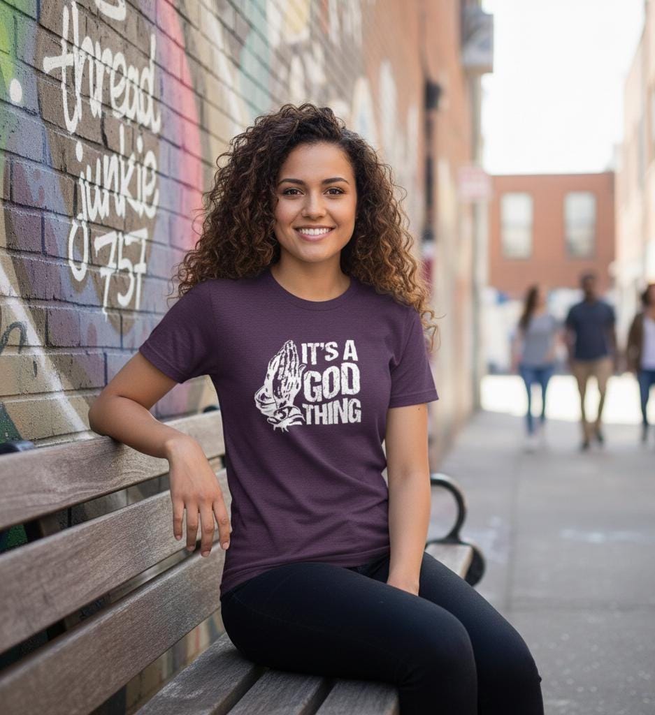 Stay comfortable while sharing your faith with this stylish and unique T-shirt featuring the uplifting phrase “It’s a God Thing.” Designed for believers who love expressing their relationship with God through everyday fashion, this T-shirt blends comfort, meaning, and modern style in one perfect piece.