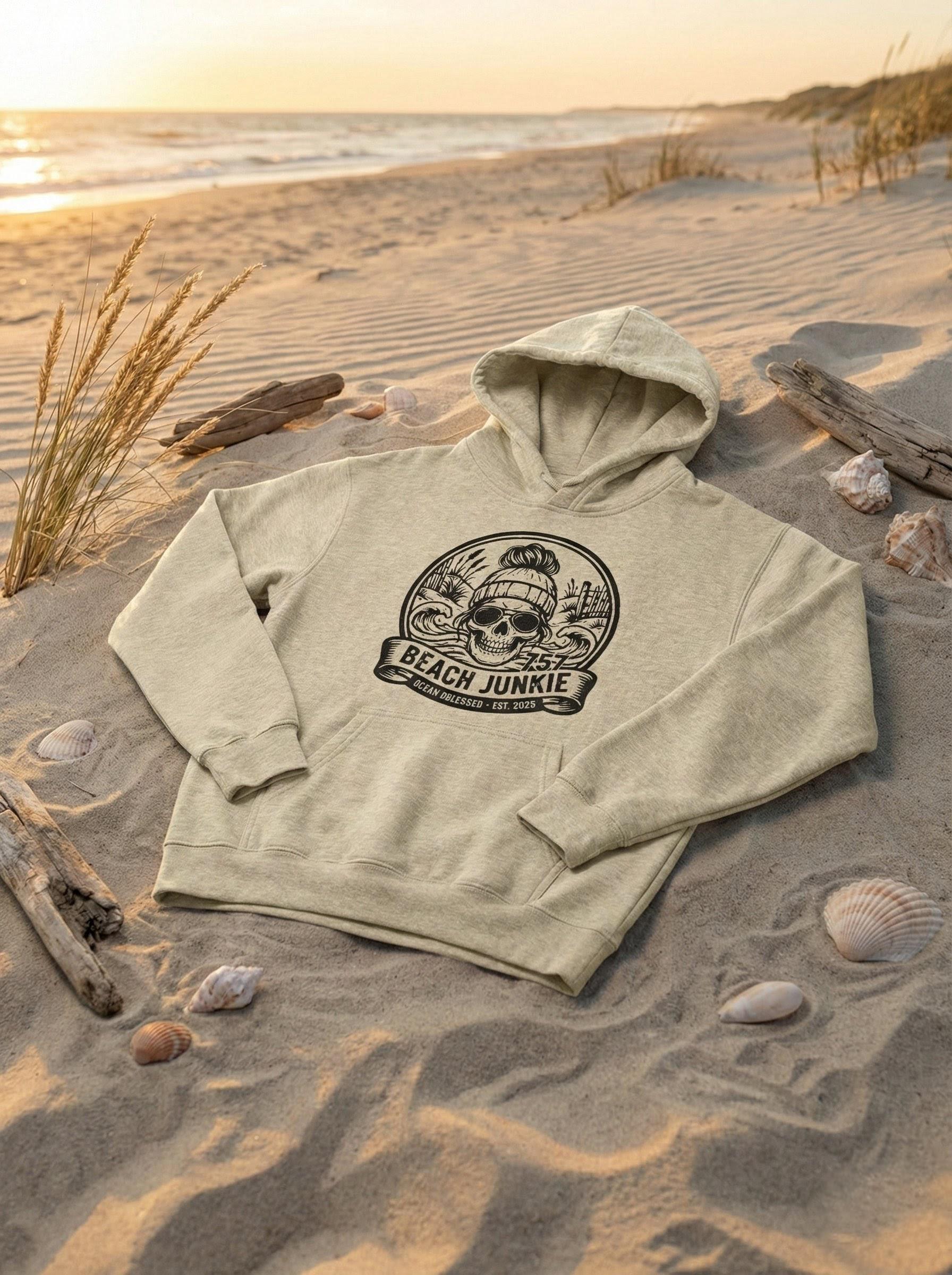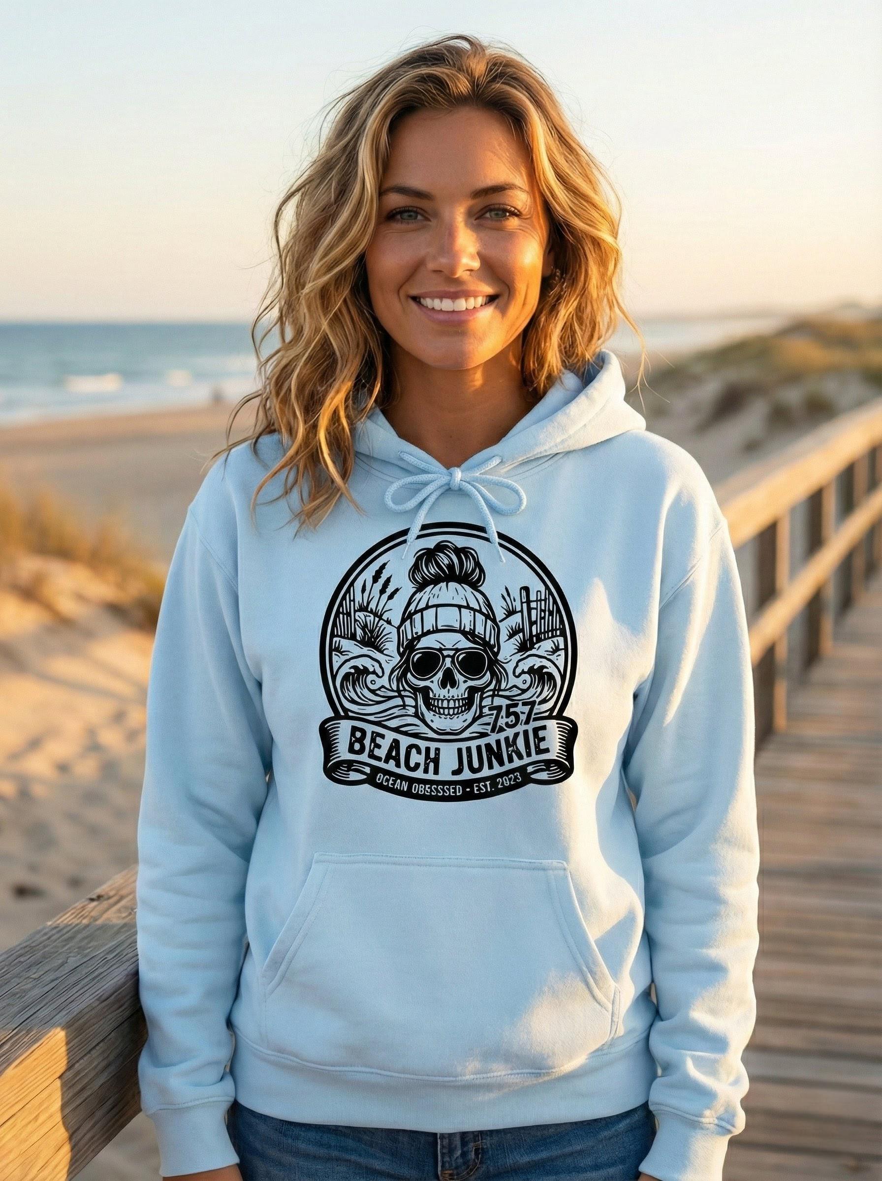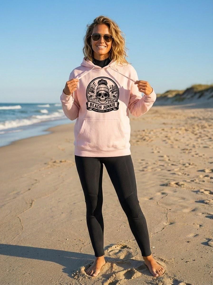 Embrace those endless summer vibes with our “Beach Junkie” sweatshirt! Crafted from ultra-soft, premium fabric, this cozy hoodie is perfect for those breezy beach days or lounging by the shore. With its laid-back design and stylish fit, it’s a must-have for any beach lover. Whether you’re chasing waves or just dreaming of the ocean.