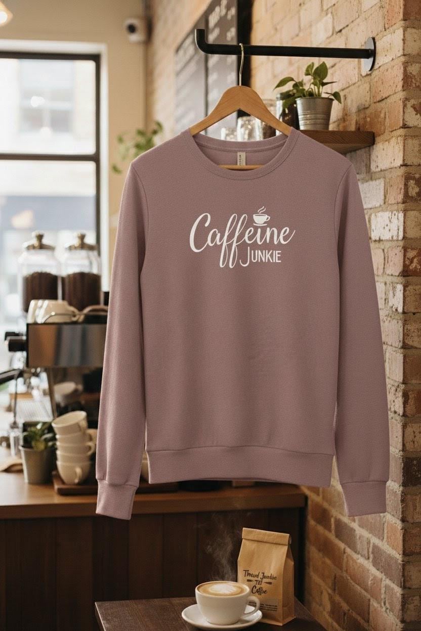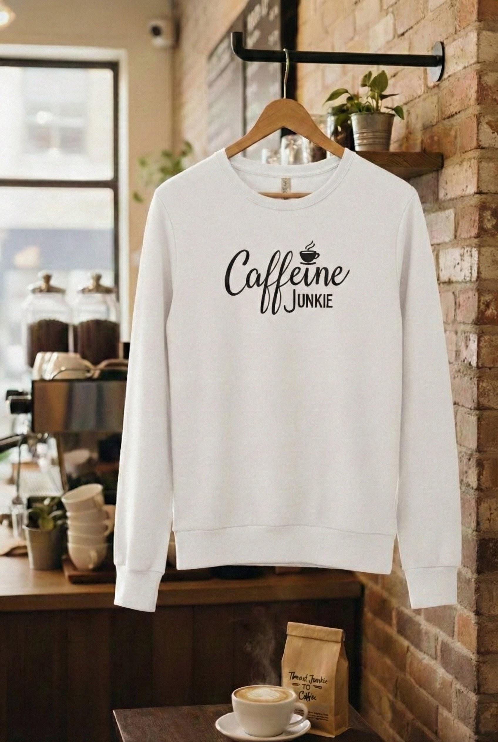 Featuring the playful phrase "Caffeine Junkie" in a stylish, comfortable design, this crewneck is an absolute must-have for early mornings, coffee dates, or cozying up with your favorite mug. It’s the ultimate statement piece for anyone whose blood type is coffee!