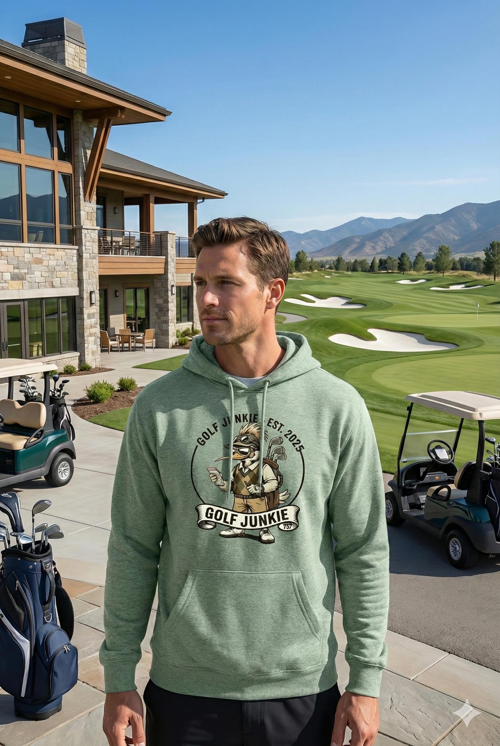 Designed for golfers who live, breathe, and dream the game, this unique graphic hoodie features a cool cartoon-style golfer character that stands out on and off the course. Perfect for weekend rounds, range days, or everyday streetwear.