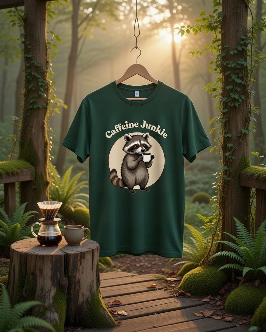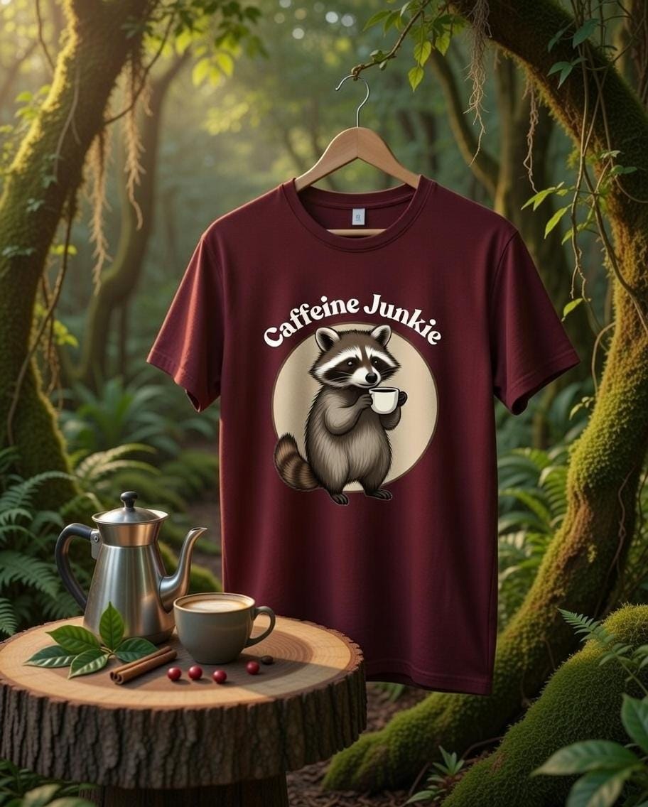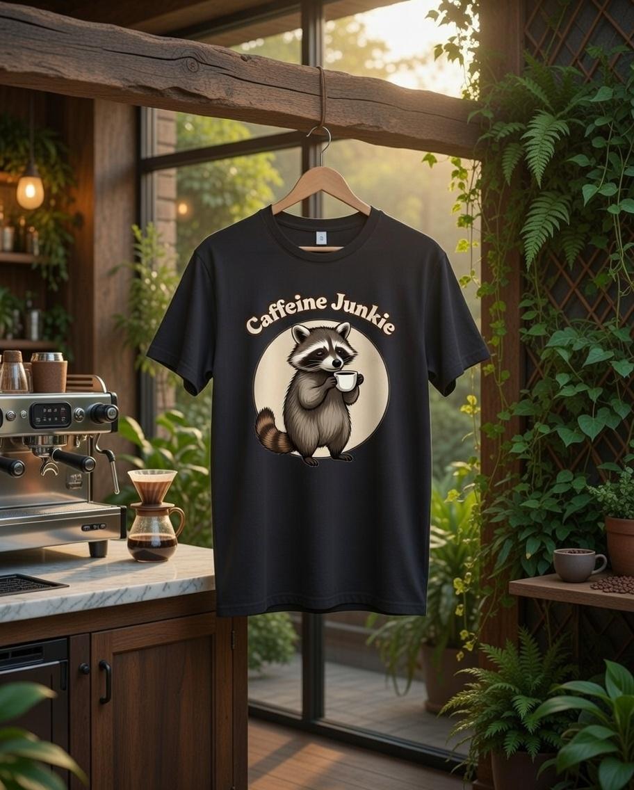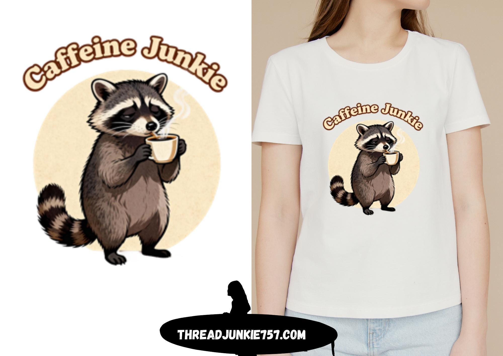 Ever feel like a little trash Panda in the morning? Well have we got the T-shirt for you! Get your cute critter caffeine fix at Threadjunkie757.com today!! Soft, durable 100% Combed Ring spun Cotton